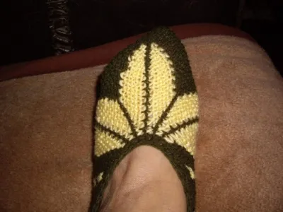 Рисунок по стопе выбираем любой (например: 2 петли желтые нити и 2 петли зеленые), сами фантазируйте, как хотите.