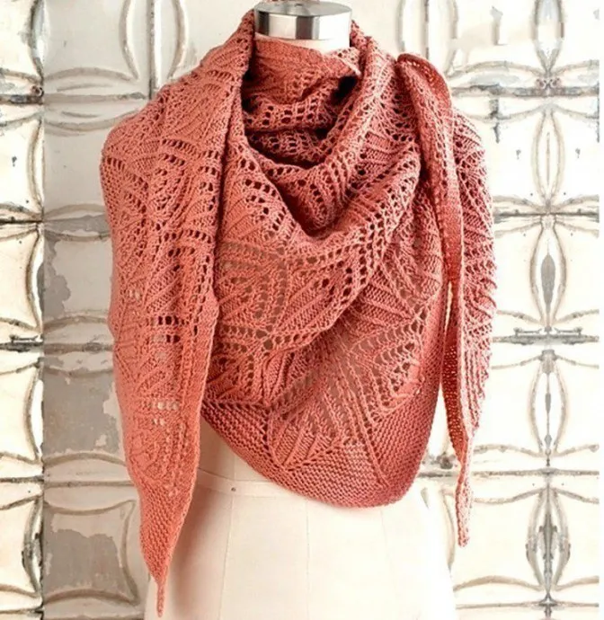 Шаль имеет треугольную форму, вяжется сверху вниз.