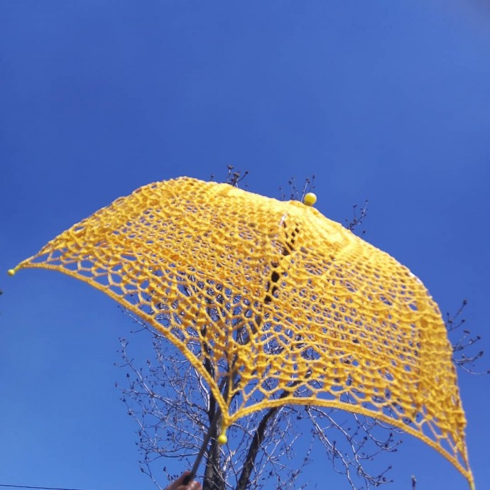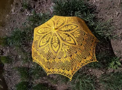 Представляю Вашему вниманию вязанный ажурный зонт.. Выполнен из ниточки ИРИС Кировской фабрики. Длина спиц 80 см.