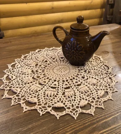 Салфеточка ,,Doys,, Семеновская пряжа ,Березка,, состав - 100% вискоза. 430 гр./100 м. Диаметр по крайним точкам -45 см (Крючок номер 1,5. Расход 70 гр.)