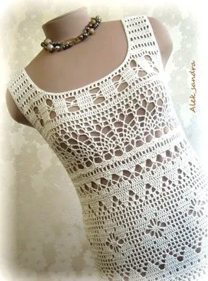 Ажурное белое платье связано в технике филейного вязания. Платье авторское, здесь представлено только как идея, предложено несколько схем узоров.