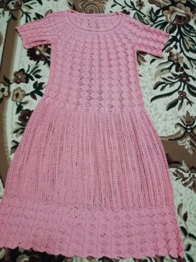 А вот и моё платье. Вообще я вяжу крючком не так много по тому что новичок. Вот и это платье проба как говорится пера. Нужно сшить ещё подклад и придумать поясок.