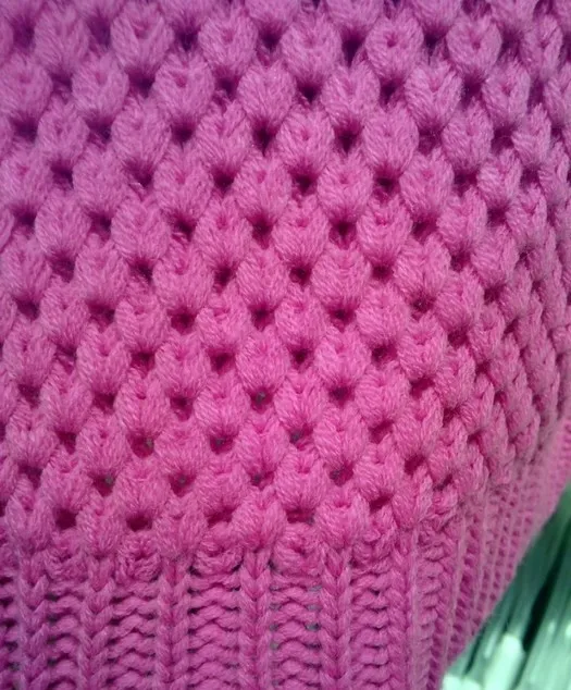 4 ряд: [ 1 петлю с двумя накидами вяжем лицевой, 1 лицевая] повторяем до конца ряда с 5-го ряда все проделываем в шахматном порядке :