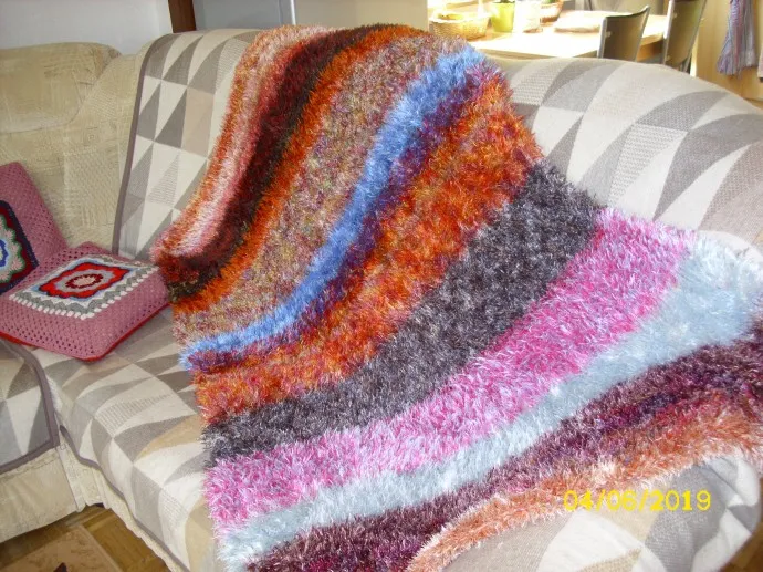 есть запасы травки давно хотелось плед связать из них но боялась что сваляется а Ваш смотрится очень даже неплохо а чем вязали-крючком или спицами?