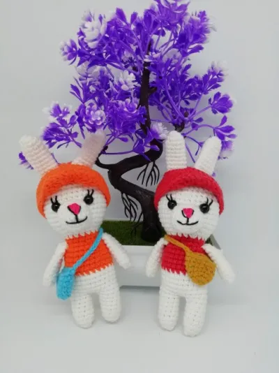 Два кролика связались у меня за выходные. Рост 14 см. Кепки снимаются
