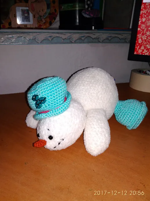 Ввиду отсутствия снега, захотелось связать такого плюшевого, белоснежного снеговичка. Пряжа ALIZE Softy, микрополиэстер. Связала за один день, Дети от него просто в восторге