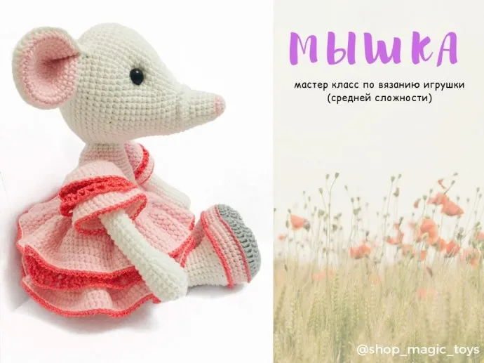 У меня отличная новость для тех, кто любит вязать и создавать игрушки. Уже сейчас вы его можете приобрести, на фото - первые страницы. Если вы его купите, то гарантировано сможете связать эту красивую мышку в платье!