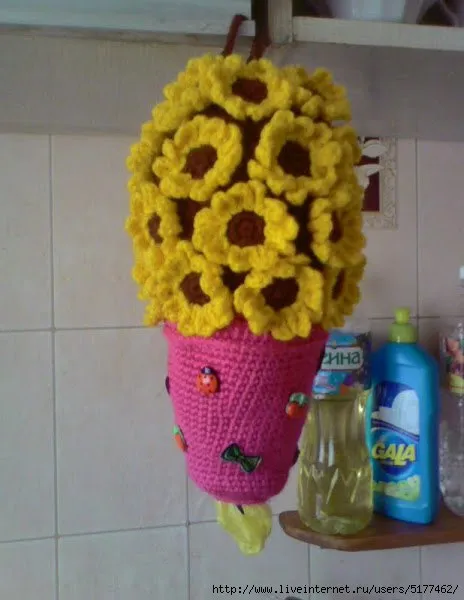 Совсем недавно на нашем форуме поднимался вопрос вязаных контейнеров для полиэтиленовых мешков. Мы решили во что бы то ни стало разыскать красоту, описанную нашей форумчанкой. Сказано - сделано!