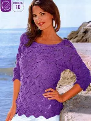 450 (550) 650 г сиреневой пряжи Capri (55% хлопка, 45% полиакрила, 105 м/50 г); спицы № 4,5; крючок №4.