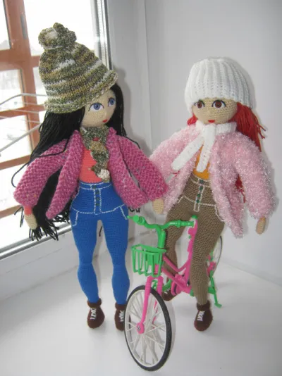 куклы ручной работы, выполнены от души, отличный подарок как ребенку так и взрослому, выполнены крючком, из семеновской пряжи, рост 34см, самостоятельно стоят, на каркасе, принимают любую позу, верхняя одежда снимается, волосы расчесываются, можно делать любую прическу.