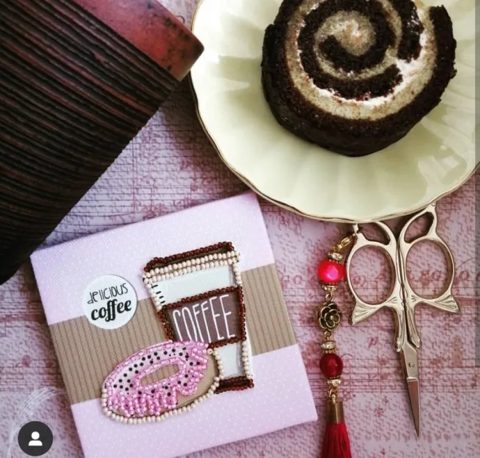 И небольшой кофейный магнитик, чтобы сделать этот субботний день еще лучше! Как всегда, в основе хлопковое полотно, натянутое на небольшой подрамник, и сама вышивка делается чешским бисером.