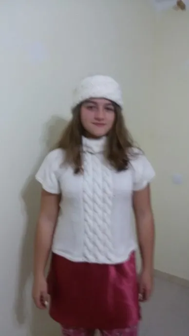 нет у меня других фото, Надежда, он был выполнен 2 с лишним года назад… То не шапочка, то повязка на голову с широкой косой… Но здесь узора не видно, вы правы…