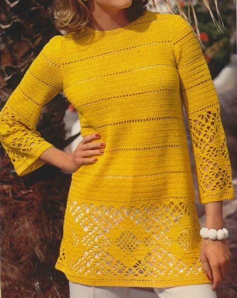 Красивая туника связана в филейной технике.