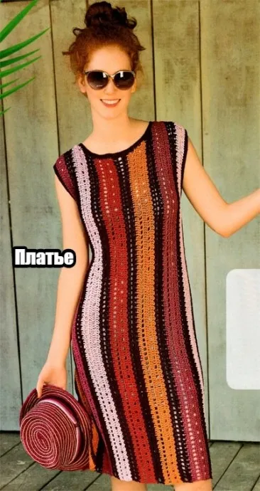 Платье вяжется поперёк. Стрелка на выкройке - направление вязания.