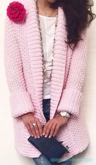 Предлагаем вашему вниманию описание нежного, романтичного, изысканного кардигана, связать который очень просто для тех, кто владеет спицами.