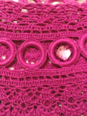 В конце прошлого лета связала себе костюм. Пряжа Пехорка "Цветное кружево", узор "Лилии" .В пояс юбки ввязала спандекс. Ну и стразики в пояс... А, ещё забыла, в кофточке и поясе - колечки "Гамма"