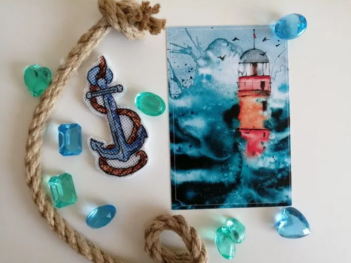 В наборе для вышивки идет 4 магнита: корабль, маяк, компас, якорь. То есть у нас получится целая морская коллекция!