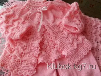 Для работы корпуса снять на спицу 195 п которые остаются, спицами 3 25 мм и используя привязанный клубок к левой половине переда, продолжить, равномерно ажурным узором высотой 5 дюймов от разделения п для рукавов. Соединить рукава С лиц. стороны к вам. вязать крючком 1 р. СБН вокруг всей кофточки, вокруг горловины, если необходимо пришить пуговицы.