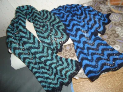 Пока вязала платье и раздумывала, связались палантины. Мохер. Узор легкий - волны. Готовлюсь к зиме. Вязала в подарок сестрам.