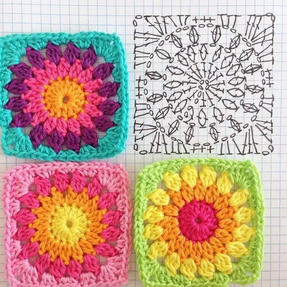 Простые квадратные мотивы, при умелом использовании цвета пряжи, преображаются!