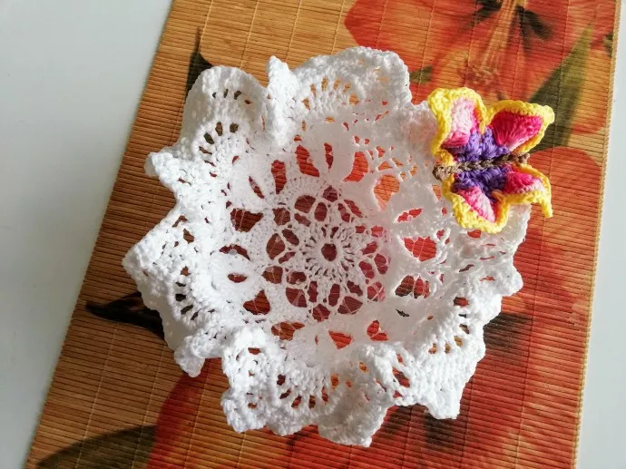 Очень оригинально! Симпатичная конфетница получилась, интересная идея использования вязанной салфетки!