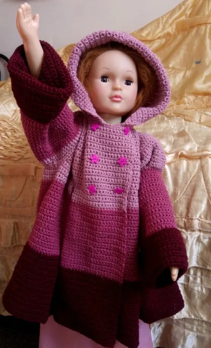 Пальтишко связано спицами. Подклад сделан из флиса.Правда модель никак не хочет стоять на месте!