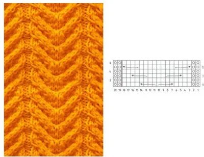 Раппорт узора равен шести рядам. Далее узор повторяется с первого ряда.