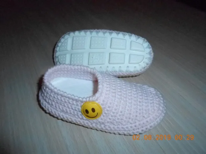 Казалось бы - лето, отпуск, я дома - вяжи и вяжи.... Но, куда там - ремонт, огород, да ещё жара несусветная.... Так что единственная вещь, что связала - это маленькие топотулечки-мокасинчики для внучечки. Подошва резиновая Максим, нитки Kartopu Amigurumi, крючок № 2. Стелька - кожкартон и вырезала ещё одну стелечку из взрослой