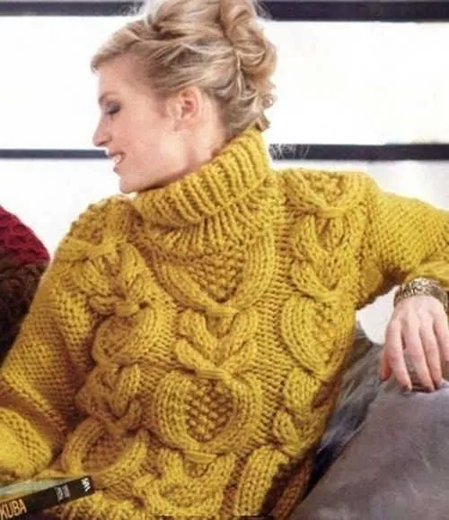 Узор с объемной косой как идея для уютного свитера