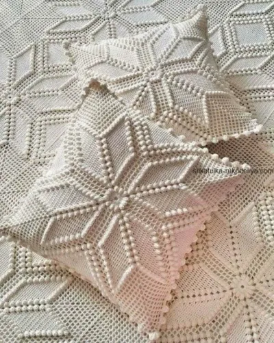 Вяжу такие покрывала с подушками на заказ. Обращайтесь.