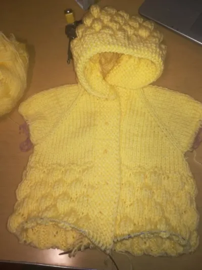 вот такой вяжется комбинезон. Фото, конечно, совсем не того цвета, что на самом деле. Но важен сам процесс, не так ли?