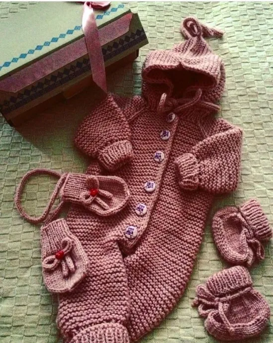 1-подарочный набор на рождение- варежки, носочки-пинетки и комбезик.