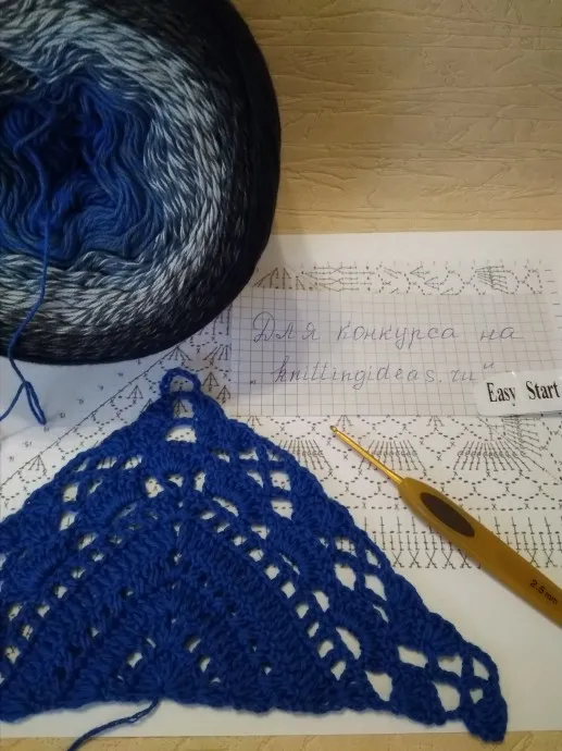 Стартует конкурсная работа "Осенняя шаль" пряжа ЯнАрт Фловерс номер 275