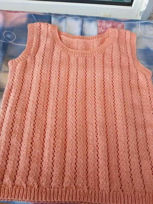 Красивый персиковый цвет и связано очень качественно — хорошая маечка получилась…