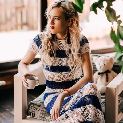 Только начинаю вязать большие вещи, напишите пожалуйста, какие нитки (граммы/метры) и размер крючка.Платье прекрасно