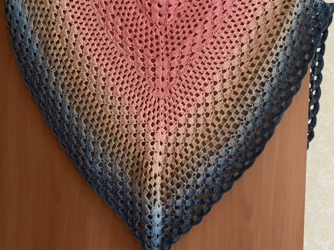 Начала вязать шаль ниткой изнутри, можно и снаружи. Мне просто очень хотелось, чтобы возле лица был тон светлее и свежее. На данную шаль ушёл всего один клубок. три вечера и шаль перед вами.