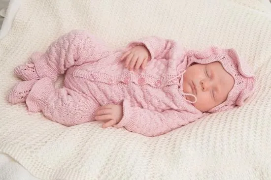 Материалы: пряжа Viking Bjørk (90% хлопок, 10% мерино, 50 г./150 м.) – 4 (5, 5, 6) мотков для комбинезона и 1 моток для шапочки и пинеток, спицы 2.5 и 3.0 мм., комплект двусторонних спиц для вязания шапочки этих же размеров, 7 (7, 8, 9) пуговиц.