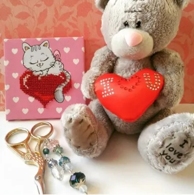 Очень ми-ми-мишная работа!))) Кошечка, действительно, прелестная и цвета яркие, сочные! Что-то вас на романтику потянуло, все работы в сердечках))))