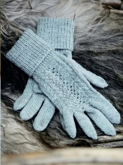 Тыльная сторона этих перчаток украшена красивым ажурным узором, а внутренняя связана простой лицевой гладью.