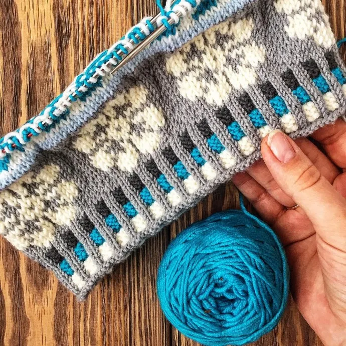 То есть когда вы вяжете разным цветом, а по рисунку у вас петли то лицевые, то изнаночные (как на фото), переходный ряд вяжете лицевыми, даже если он у вас должен быть изнаночными петлями и тогда у вас не будет вкраплений другого цвета.