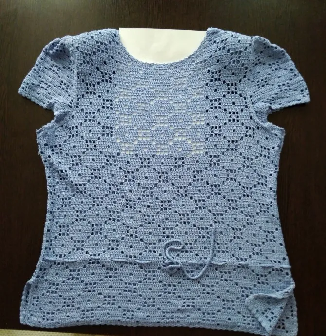 Работа прошлого лета, кофточка для себя, довязывала на море и выгуливала там, старшему внуку понравился бантик на спине. Задумывалась по-другому. в процессе появились рукавчики с защипами вверху. в нашем климате очень комфортно.