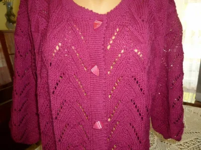 Люблю такой цвет, очень аккуратно связано, но пуговицы просятся посовременнее, что ли…