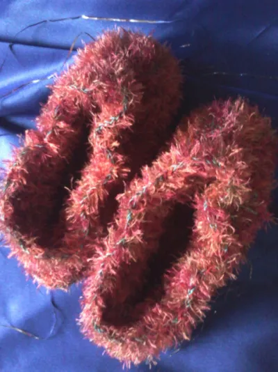 Кто любит лохматое, пушистое, пряжу травка.Мягкие, красивые, теплые, удобные тапочки на подошве из войлока.Тапочки связаны спицами в две нити.Пряжа травка+ализе дива.Длина подошвы 28см.По своим ощущениям, как оденишь тапули снимать уже не хочется.