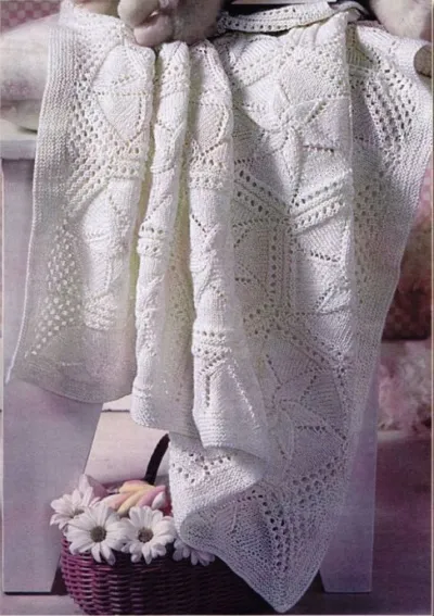 Вам потребуется: 350 г пряжи (100% акрил) белого цвета, спицы № 3,5.