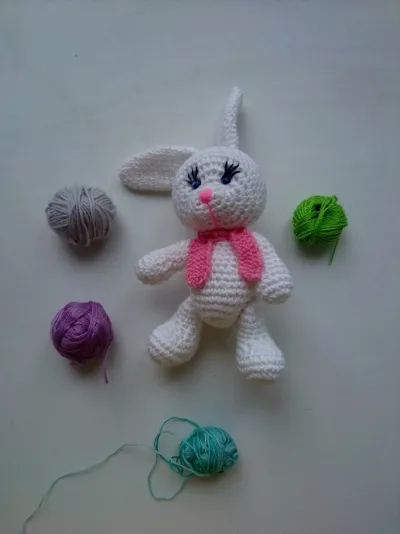 Добрый день! Представляю вашему вниманию еще одну зайку, связанную по просьбе одной моей постоянной клиентки. Связана она по этому же мастер класс Анастасии Кирсановой, ссылкаhttps://amimore.ru/zajka-flo-205. Пряжа VITA LILI, крючок № 2.Высота зайки 14,5 см без ушек.
