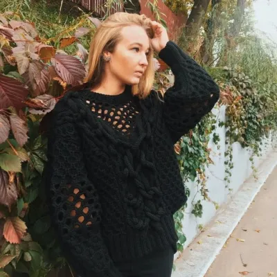 Оверсайз Черный связан спицами из 100% кашемира,плетения piuma.