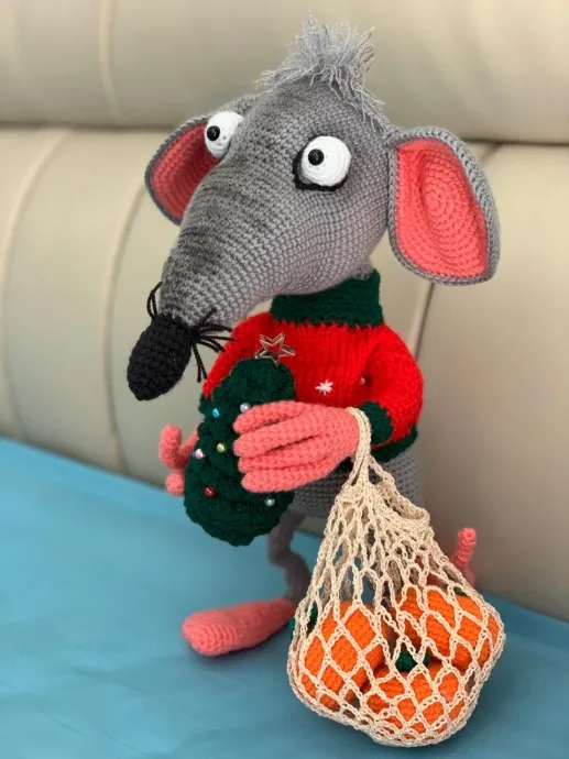 Мк крысёныша от Светланы Леоновой, а вот идея одеть, в руки дать ёлку, авоську с мандаринами моя