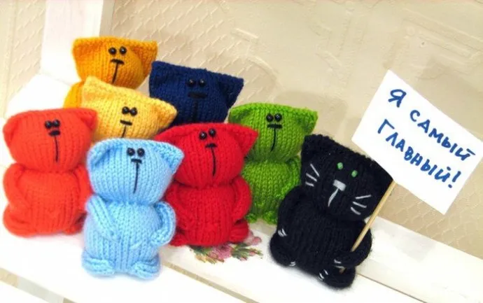 Набрать 6 петель, вязать 12 рядов лицевой гладью. Закрыть петли, сшить детали, пришить к телу.