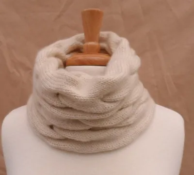 Убираем временный наб. п. и закрываем шов (п. временного наб. + рабочие п.) иголкой методом петля в петлю. Модный и необычный хомут готов!