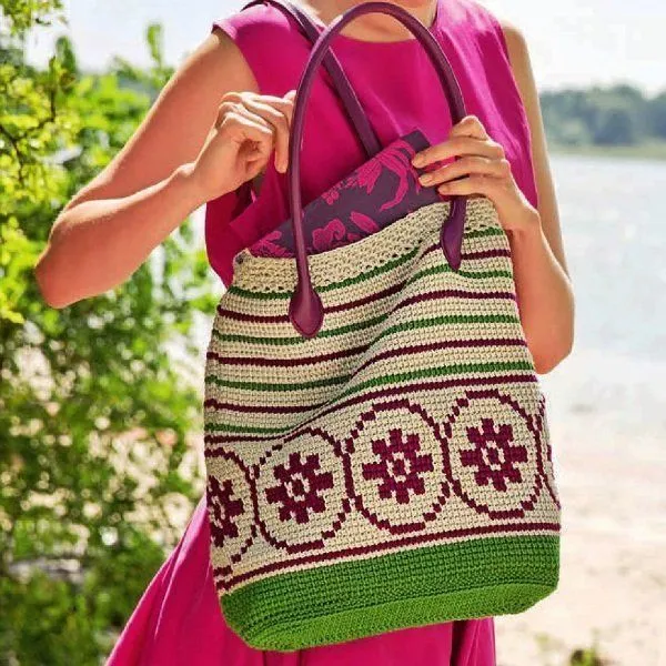 Связанная крючком сумка с жаккардовым узором всегда будет трендовым летним аксессуаром. Вязаная сумка в вашей коллекции будет не только удобной, но и стильной вещью.